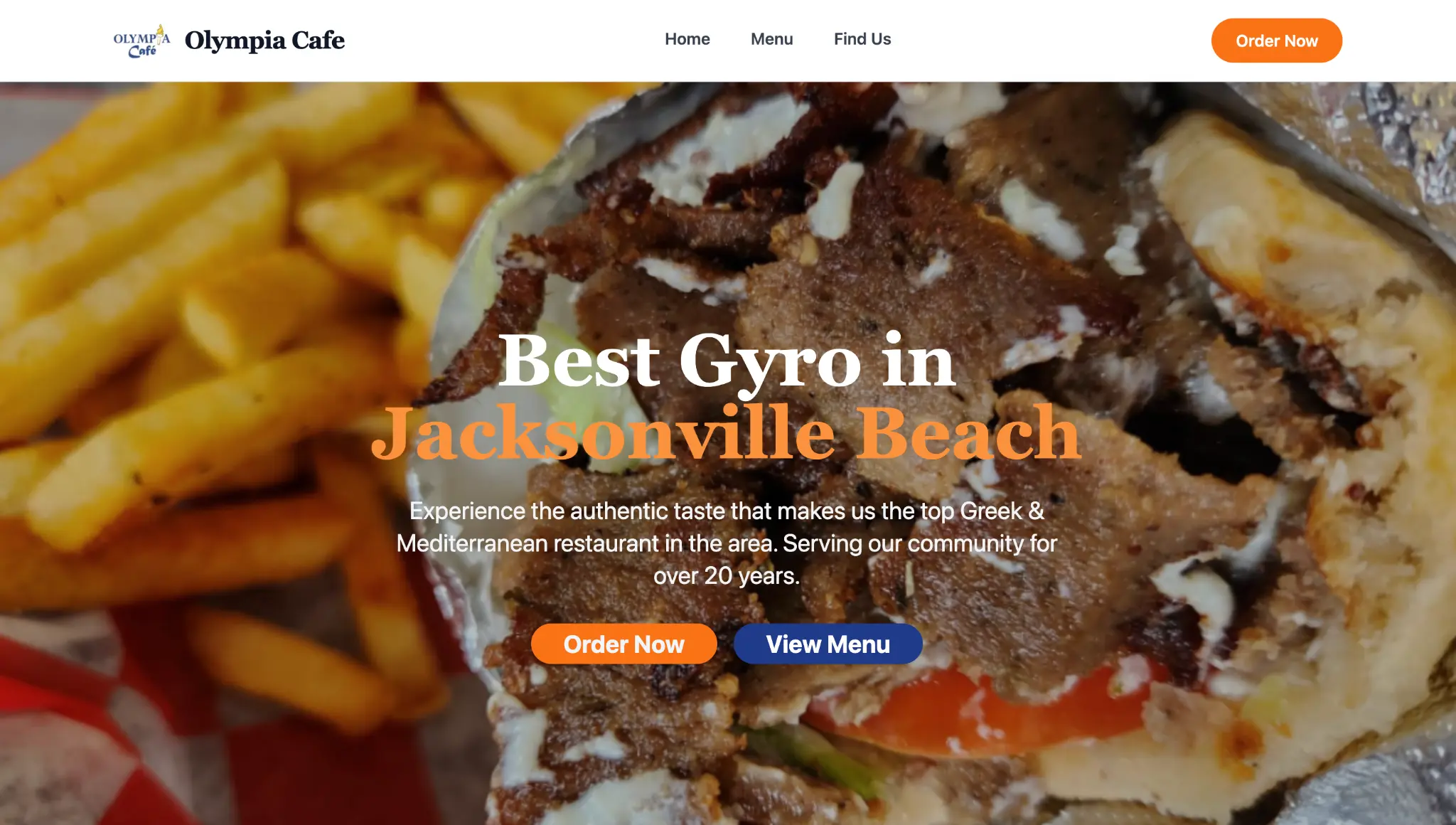 A full custom website for a beloved Jacksonville Greek cafe, built to showcase the menu, tell the brand story, and make the location easy to find on mobile. The experience focuses on fast load times, clear calls to action, and a warm visual identity that helps turn nearby searchers into in-person diners.